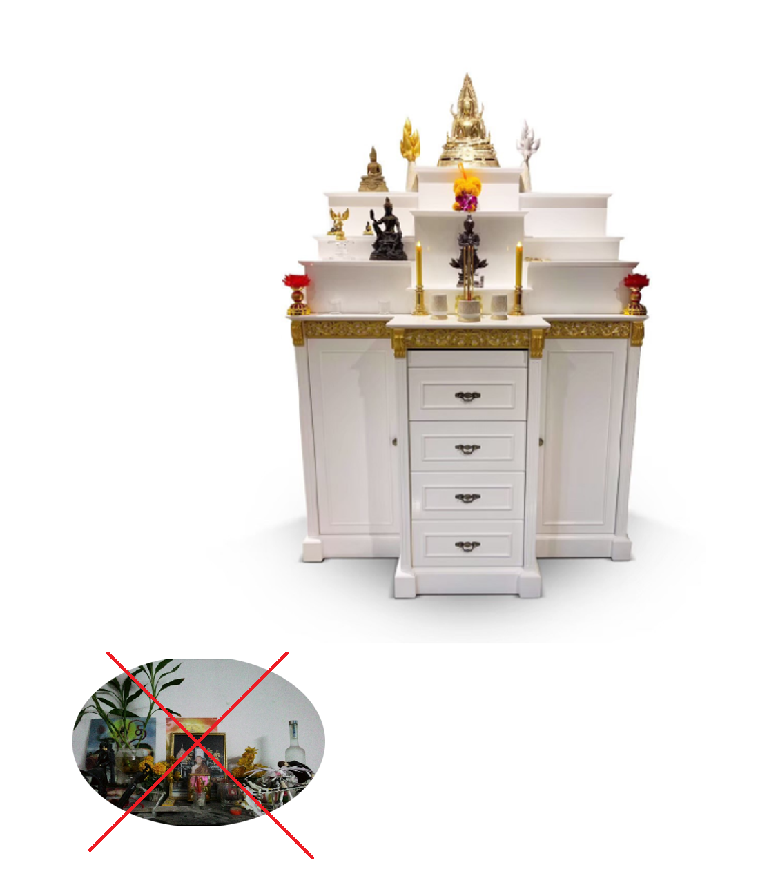 การเลือกพระพุทธรูป ภาพต่างๆหรือสิ่งศักดิ์สิทธิ์ที่เราให้ความเคารพ ไอเดียในการเลือกว่าจะจัดวางอะไรก็เป็นสิ่งที่สำคัญเช่นเดียวกัน เพราะการจัดวางที่ไม่คำนึงถึงสิ่งนี้ จากการจะตกแต่งหิ้งพระหรือห้องพระให้บ้านดูดีมีสไตน์ดูโมเดิร์น อาจจะทำให้บ้านเป็นวัดหรือศาลเจ้าขึ้นมาทันที