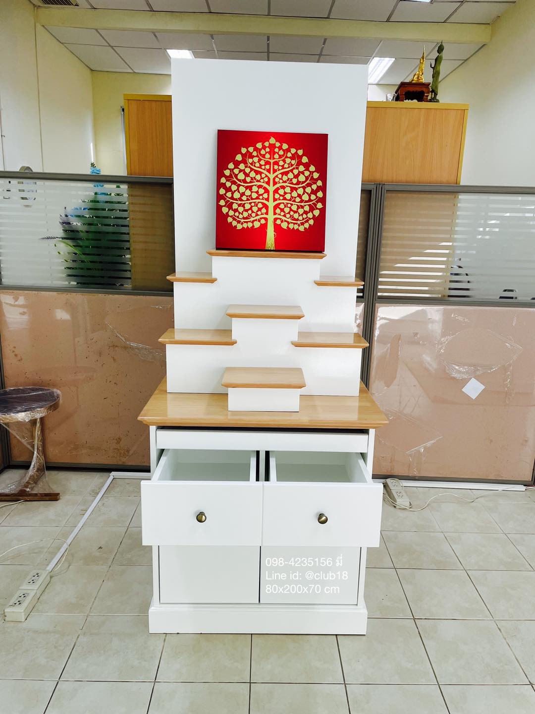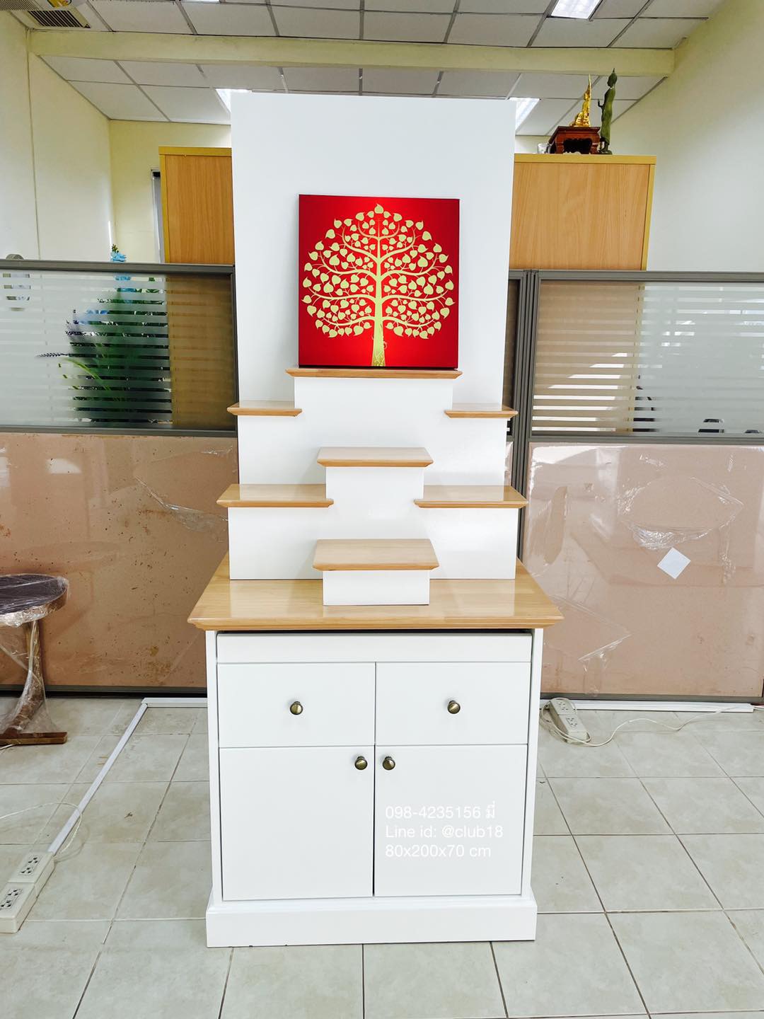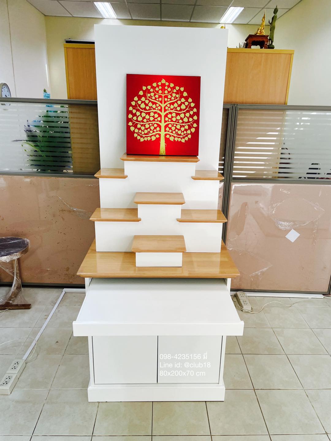- ขนาดเล็ก 80x200 cm กว้างกำลังดี วางตั้งตกแต่งในบ้านได้ง่าย ออกแบบสวยโมเดิร์น ทันสมัย จัดระดับการวางองค์พระได้สบาย ด้านล่างมีตู้สำหรับเก็บของ