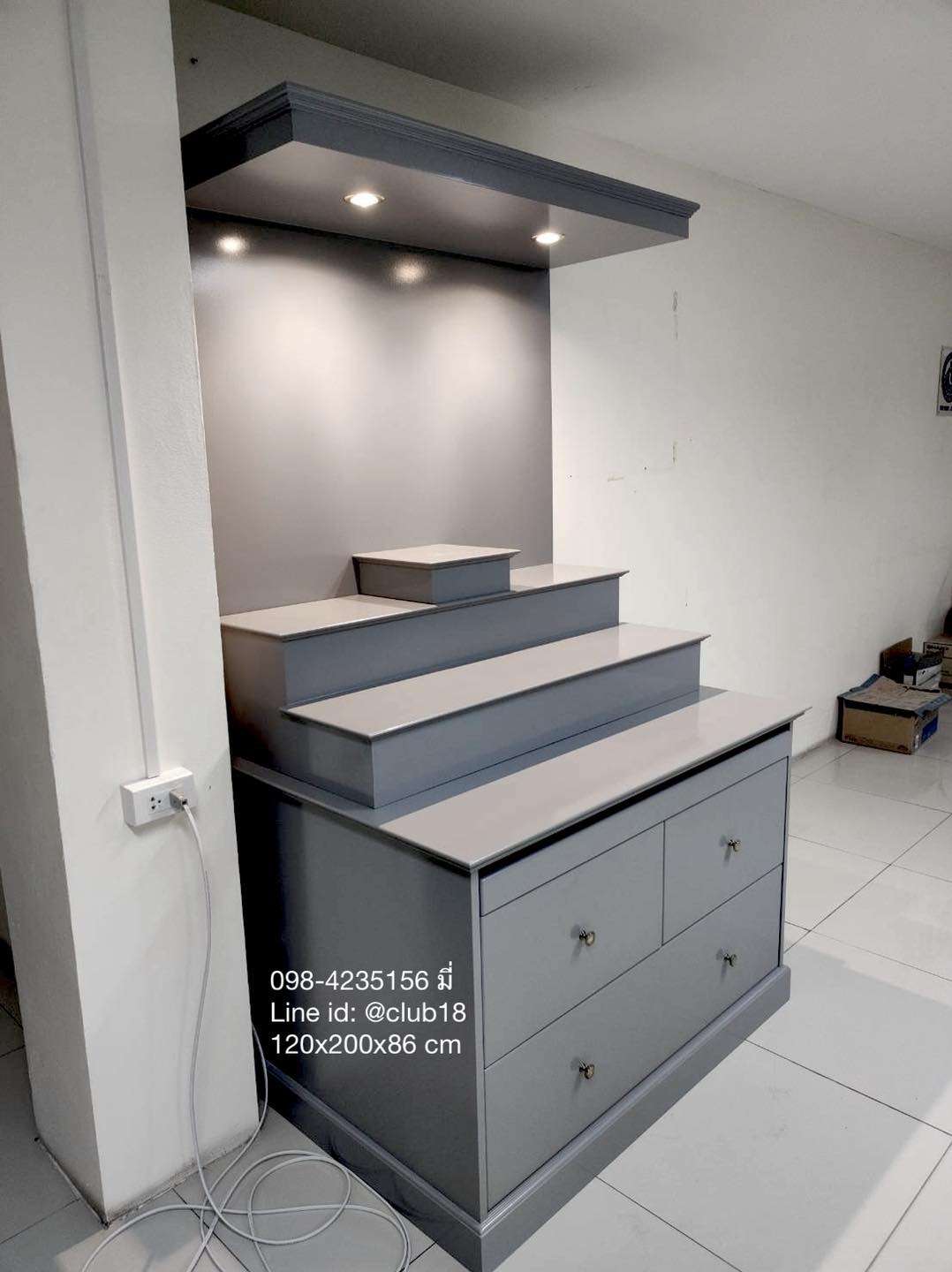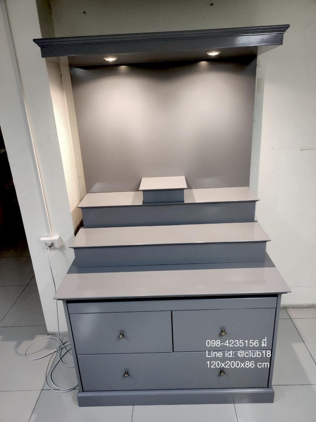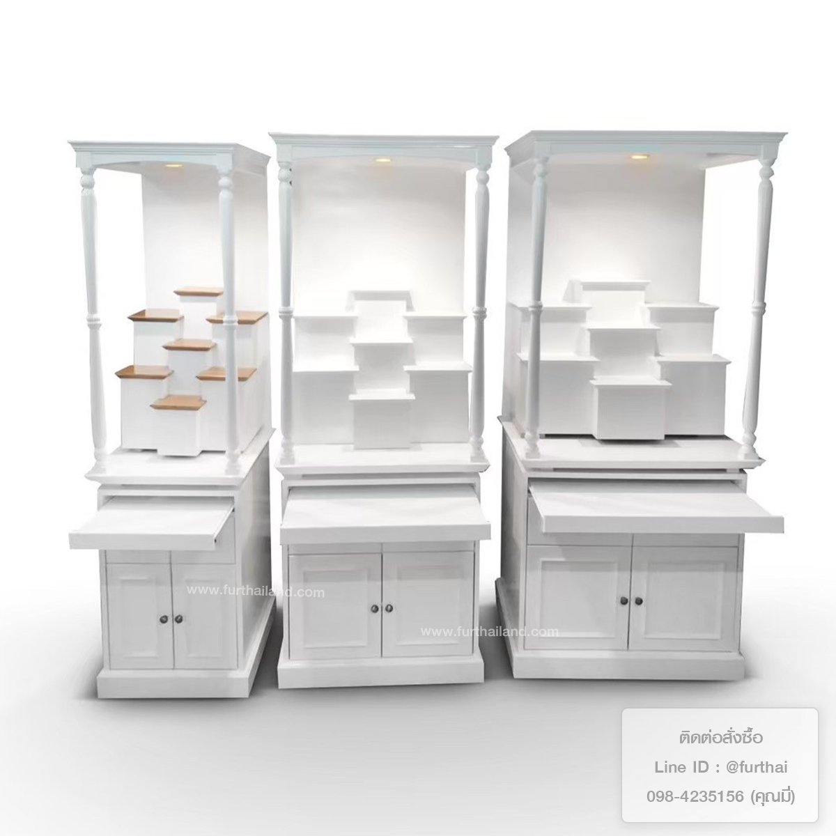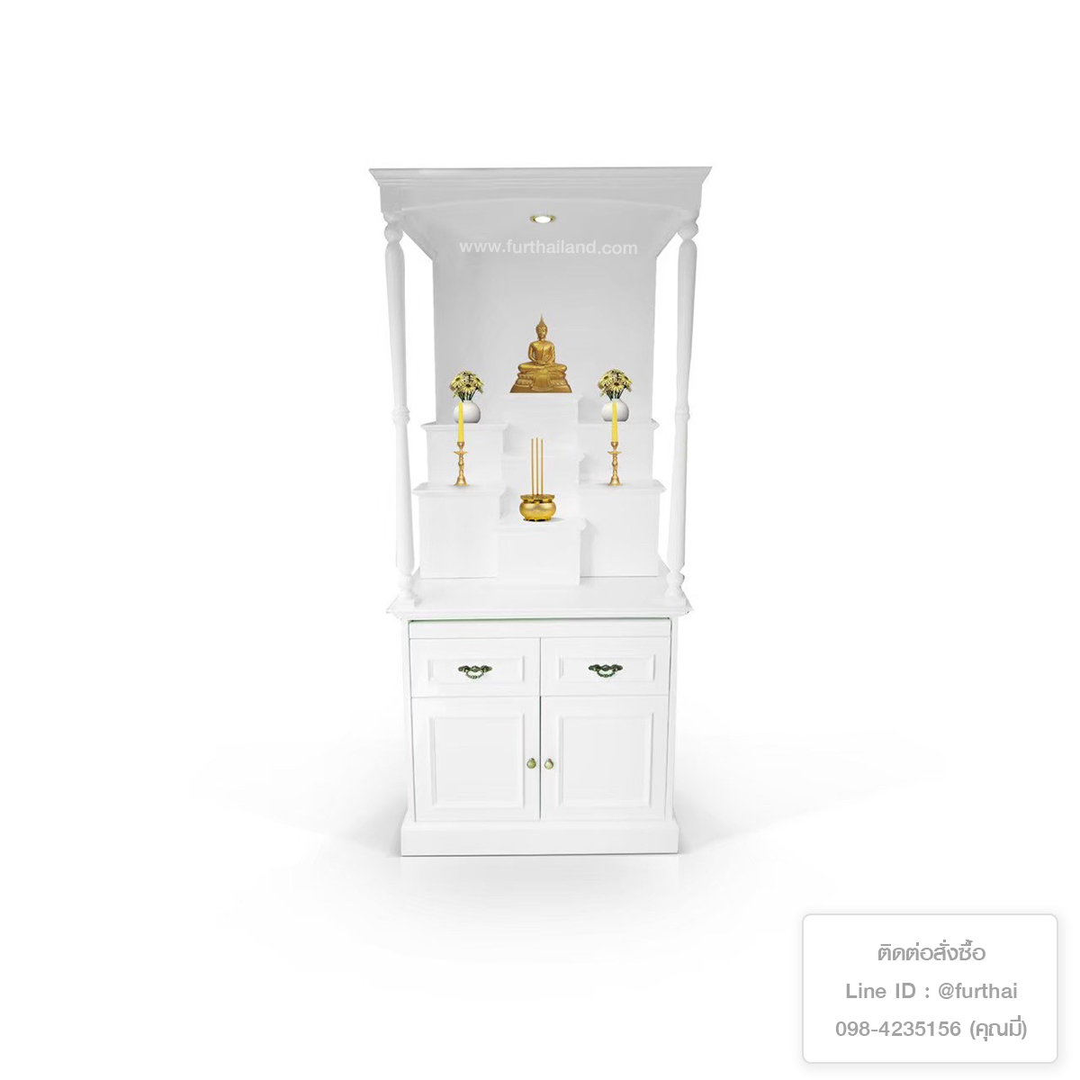 - ขนาดเล็ก 80x200 cm กว้างกำลังดี วางตั้งตกแต่งในบ้านได้ง่าย ออกแบบสวยโมเดิร์น ทันสมัย จัดระดับการวางองค์พระได้สบาย ด้านล่างมีตู้สำหรับเก็บของ
