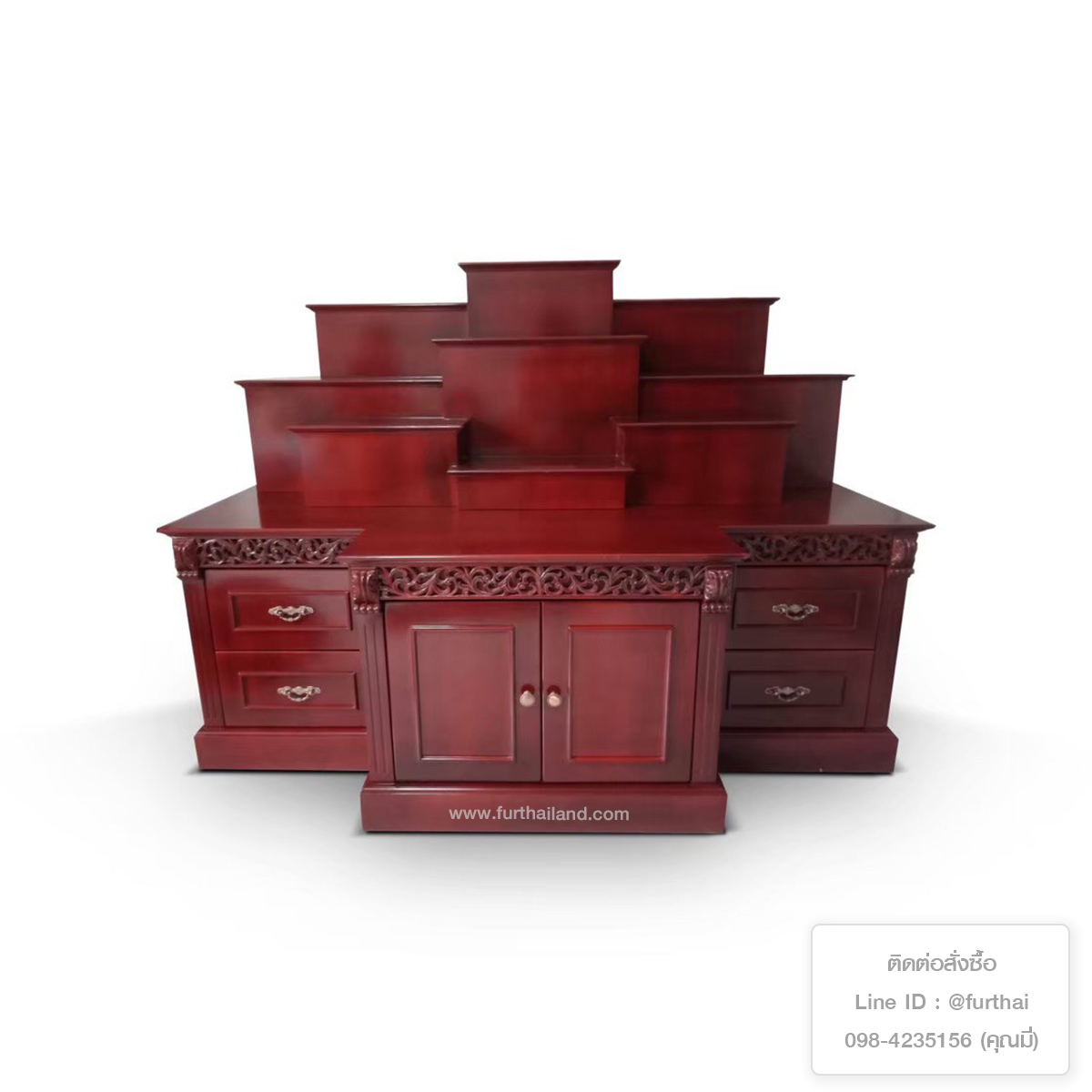 - ขนาดใหญ่ 200x120 cm แบบเรียบ ไม่ฉลุลาย ท็อปบน สีย้อมไม้เข้ม เพิ่มความเรียบหรูดูแพง ให้หิ้งพระ ดูสวยสง่าลงตัว เพิ่มสง่าราศีให้ห้องพระของคุณได้เลยทันที ขนาดกว้าง มีพื้นที่ให้จัดวางได้สะดวก สัดส่วนกำลังดี หากบ้านมีพื้นที่พอเหมาะ รุ่นี้ถือว่าตอบโจทย์ไม่แพ้รุ่นไหนๆ เลยครับ