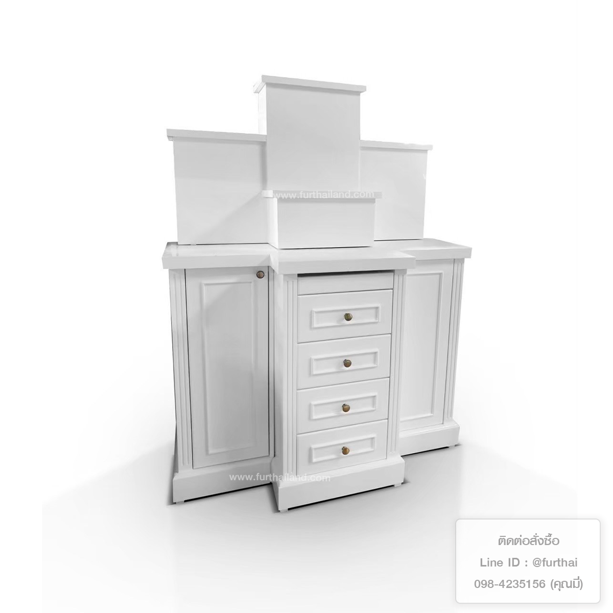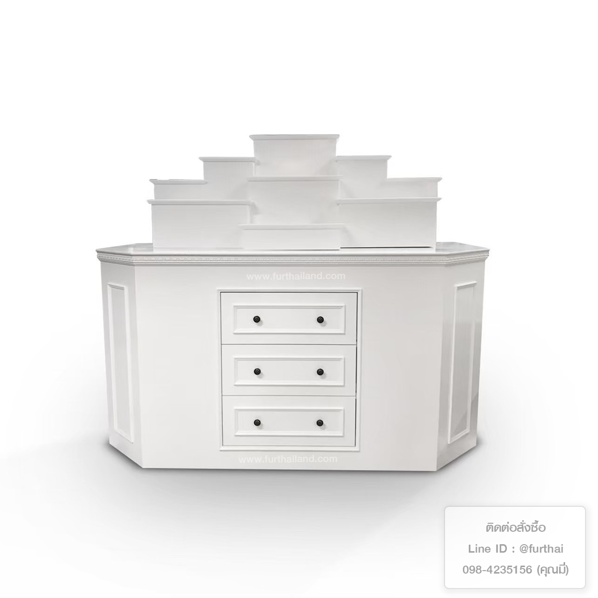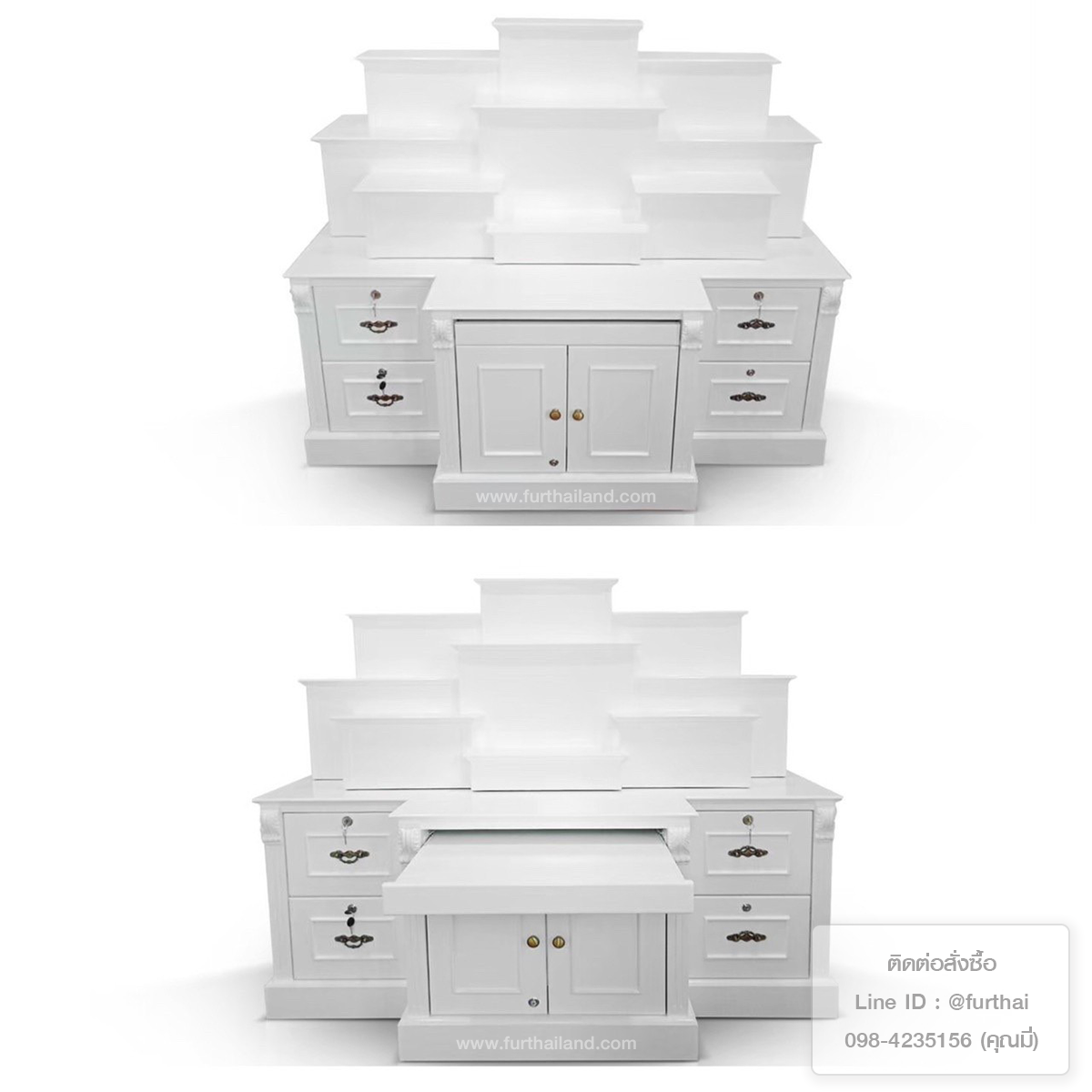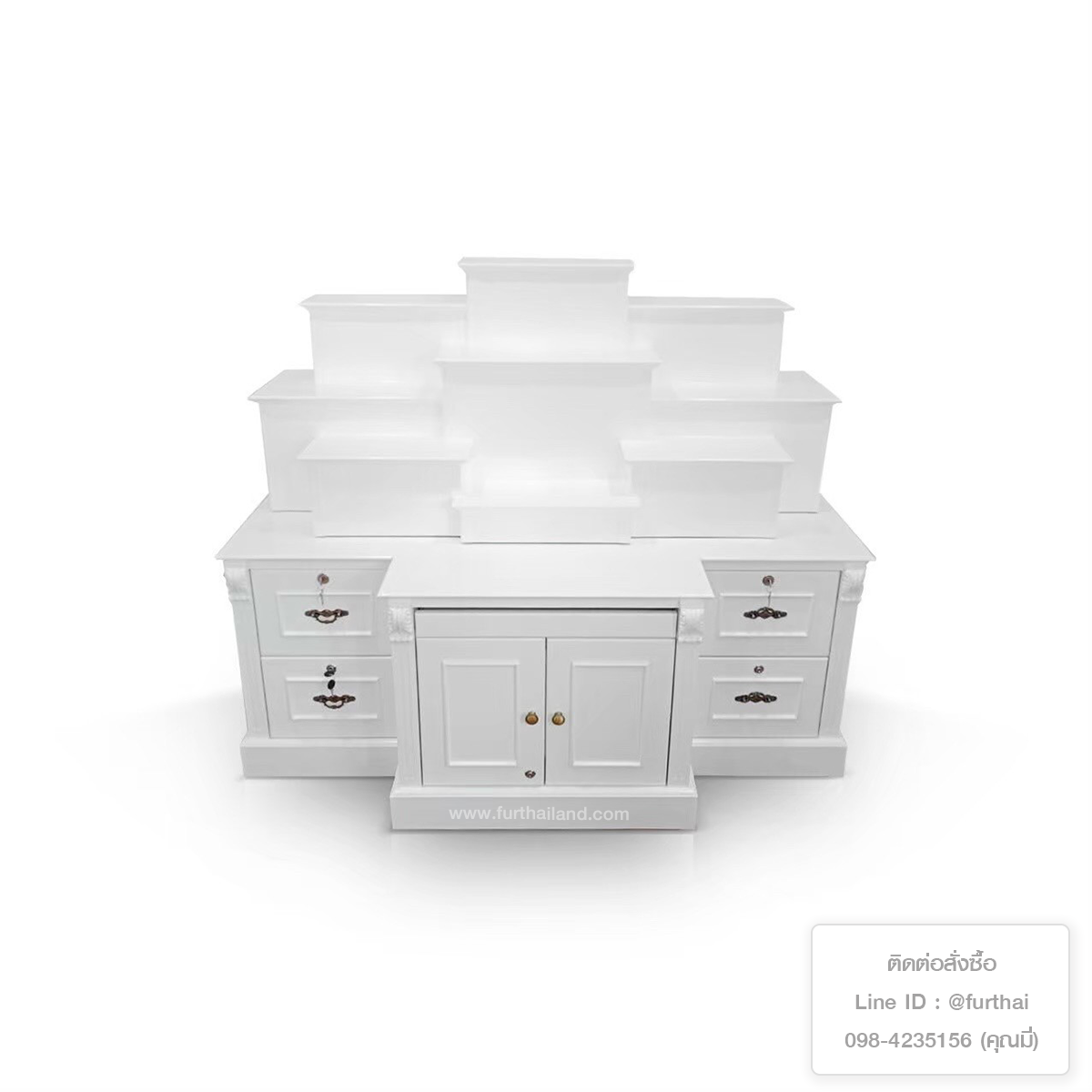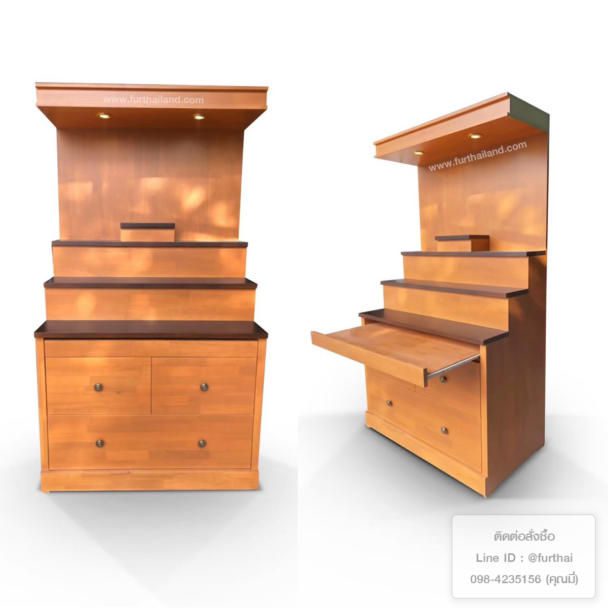 มีทั้งแบบทรงสูง วางได้แม้ห้องที่มีพื้นที่จำกัด ดูสมัยใหม่ แค่ประดับภาพมงคลไว้ด้านหลัง และวางองค์พระไว้ตรงกลาง ก็สวยลงตัว